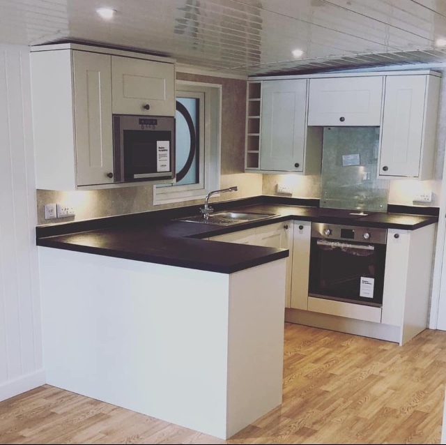 Our River Pods Houseboats were born through thinking green! Each River Pod is bespoke built for comfortable, green, low cost living and at a very affordable price. Our show River Pod has one bedroom, fully fitted kitchen and shower room, complete with a lounge dining area and can accommodate 2-4 people, although we are able to build to any size up to 44 x 12ft and include 2 or even 3 bedrooms, depending on your budget and we are always happy to discuss your ideas and plans.